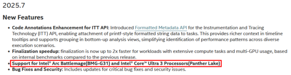 Bemerkenswert ist dabei nicht nur der Eintrag bei diesem Performance-Analysetool selbst, sondern auch, dass der BMG-G31 gemeinsam mit den kommenden Intel Core Ultra 3 Prozessoren auf Basis von „Panther Lake“ aufgeführt wird. Diese CPUs sind bereits für eine öffentliche Enthüllung auf der CES 2026 Anfang des nächsten Jahres vorgesehen. Die gemeinsame Nennung legt nahe, dass Intel ein entsprechendes Battlemage-Reveal zeitlich eng an das Panther-Lake-Debüt koppeln könnte.