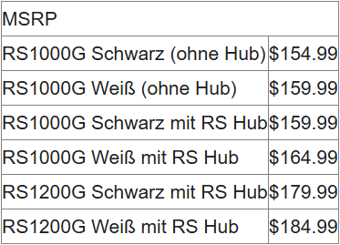 Einige Modelle beinhalten den RS HUB – ein abnehmbares, magnetisches USB-Modul mit vier USB-2.0-Headern (für bis zu acht Geräte). Er kann direkt am Netzteil befestigt und versorgt oder flexibel an einer beliebigen Stelle im Gehäuse magnetisch angebracht und über SATA betrieben werden. (Beim 1200-W-Modell enthalten, beim 1000-W-Modell optional.)