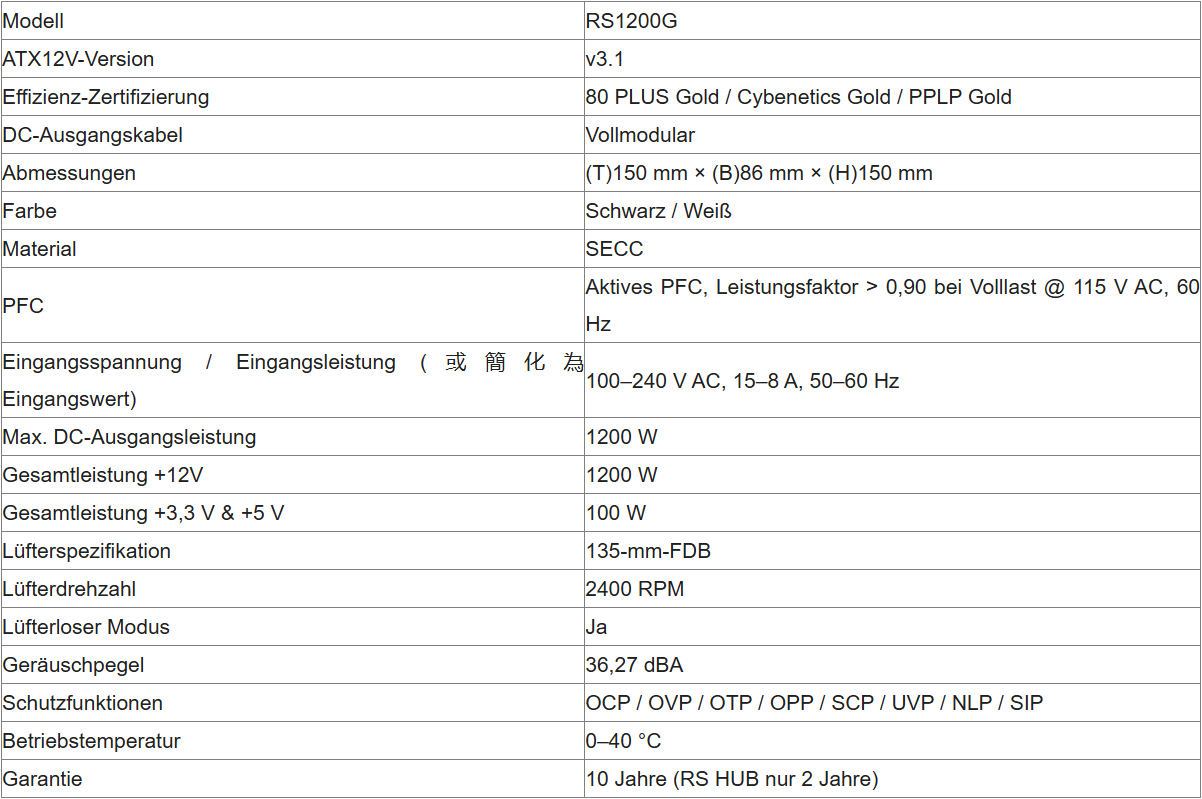 Die RS Series PSU ist nach 80 PLUS Gold, PPLP Gold und Cybenetics Gold zertifiziert und erreicht über 90 % Effizienz unter typischen Lasten, was Abwärme reduziert und die Energieeffizienz im Alltag verbessert. Die RS Series setzt auf industrielle EPCOS-Kondensatoren, die kleiner, aber robuster als herkömmliche Komponenten sind, und kombiniert sie mit japanischen Kondensatoren, um strenge Anforderungen an Zuverlässigkeit und Vibrationsbeständigkeit langfristig zu erfüllen. Für ein sauberes Kabel-Layout kommen weiche, flache CPU-/GPU-/SATA-/PATA-Kabel mit magnetischen Kabelbindern zum Einsatz, die das Verlegen erleichtern, Kabelsalat reduzieren und den Airflow verbessern. Die Kühlung übernimmt ein großer 135-mm-FDB-Lüfter mit Zero-RPM-Modus für optimiertes Thermomanagement und einen leiseren Betrieb.