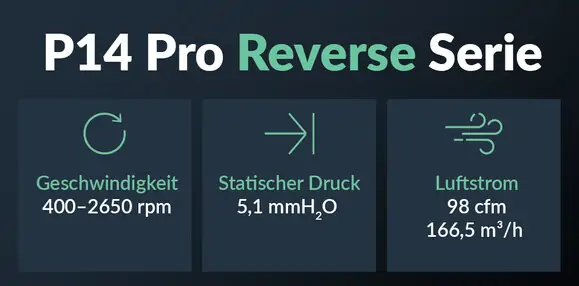 Wie die 120-mm-Lüfter der Serie, wurden die P14 Pro Reverse-Lüfter ebenfalls speziell für umgekehrten Luftstrom entwickelt und eignen sich ideal für Pull-Konfigurationen sowie eine präzise A-RGB-Darstellung. Ihr strömungsoptimiertes Design mit trichterförmigem Einlass und tropfenförmigen Streben reduziert Turbulenzen, minimiert Geräusche und sorgt für maximale Effizienz.