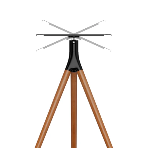 Auch die Proportionen des Ständers tragen zu diesem Eindruck bei. Mit 82,8 Zentimetern Höhe und Abmessungen von 590 auf 514 Millimetern präsentiert er sich stabil, ohne zu massiv zu erscheinen. Seine klare Formensprache erlaubt es, ihn frei im Raum zu platzieren – neben einer Couch, in einer Ecke des Wohnzimmers oder auch in einem Arbeitsbereich. Dabei bleibt er flexibel genug, um sich dezent zurückzunehmen, sobald das Bild an der Wand oder Leinwand die volle Aufmerksamkeit auf sich zieht.