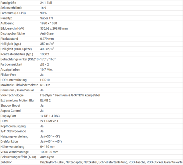 - Ultraschnelle 610 Hz Bildwiederholfrequenz (OC): Bietet eine flüssige und verzögerungsfreie Darstellung für ein unübertroffenes Spielerlebnis.
