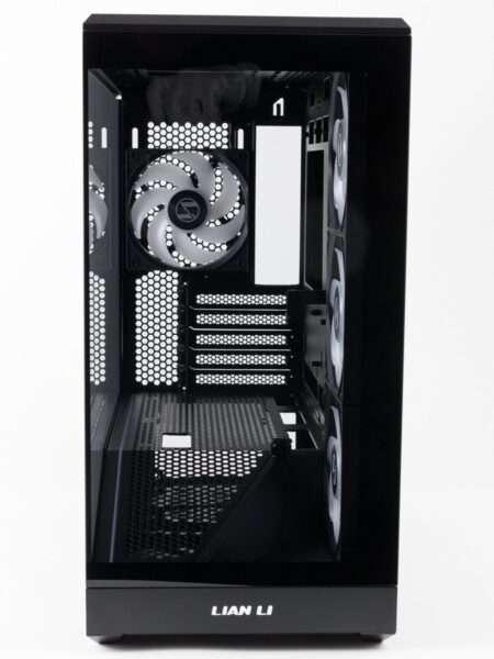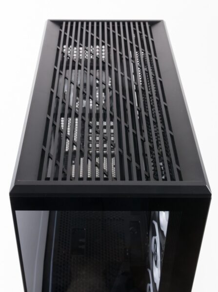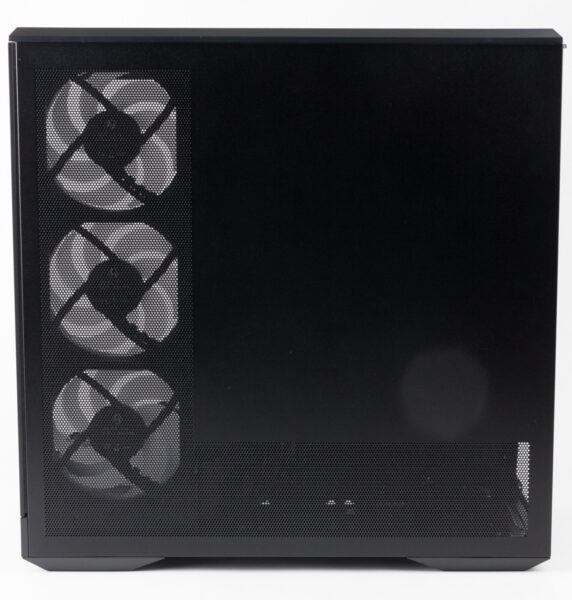Die rechte Seite besitzt feinmaschige Löcher im gesamten unteren Bereich sowie seitlich hinter den Lüftern und ist ansonsten clean gestaltet worden.