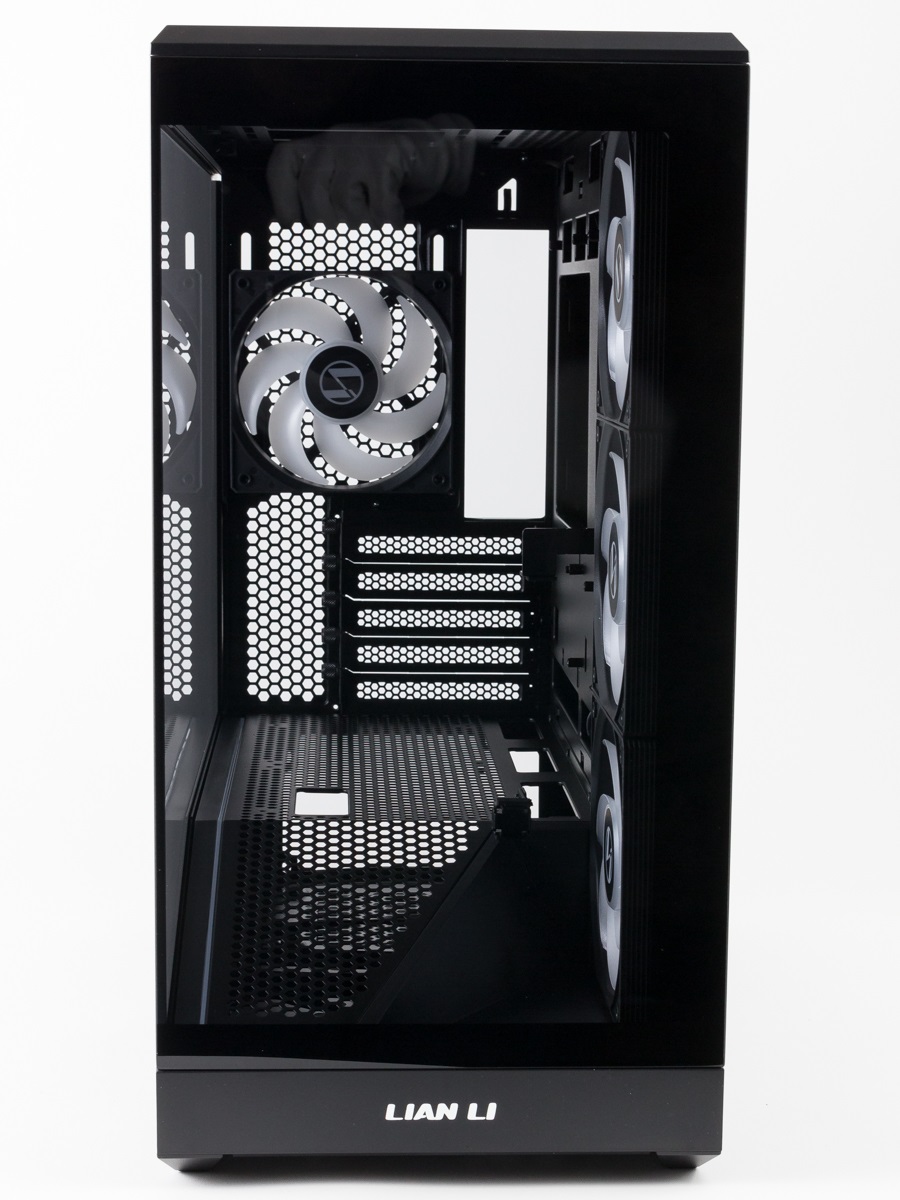 Das Lian Li Vector V100 Mini misst 436x222x444 mm (LxBxH) und ist damit in allen Bereichen etwas kleiner als der große Bruder. Das Gehäuse wiegt zudem auch weniger und bringt nur noch rund 7 Kg auf die Waage. Die Verarbeitungsqualität war durchgehend sehr gut.