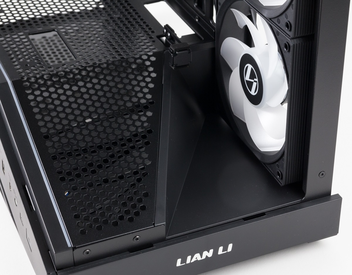 Das Lian Li Vector V100 Mini besitzt die Besonderheit des großen Bruders und bietet hinter der Front eine gerade Auflagefläche.
