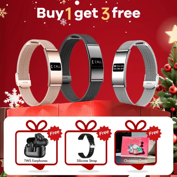 Rogbid Vogue is available in three stylish color options—Radiant Gold, Lunar Silver, and Chrome Shadow—each paired with a matching metal strap for a refined, cohesive look. It is now officially on sale at the Rogbid official store for $59.99. To celebrate the Christmas season, enjoy a special buy-one-get-three-free offer: with every Rogbid Vogue purchase, you’ll receive a Bluetooth earphone valued at $29.99, an extra silicone strap, and a Christmas greeting card.
