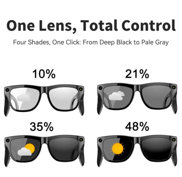 Its core feature is advanced electrochromic lens technology. Users can instantly adjust the lens tint via voice or touch, with lightning-fast transitions that adapt to any lighting—indoors, outdoors, or in bright sunlight. This pairs with an ultra-lightweight frame designed for a natural, „wear-and-forget“ fit, perfectly balancing technology and comfort for daily wear.