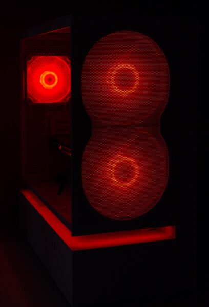 Die Leuchtkraft der Lüfter hat uns gefallen, auch wenn sie je nach Farbe den Innenraum nur schwach ausleuchtet. Das wahre Highlight ist die LED-Leiste unter dem schwebenden Teil, was das außergewöhnliche Design besonders gut in Szene setzt.