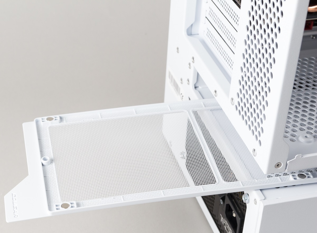 Das Cougar CFV235 Mesh besitzt hinter der Front sowie in dem offenen Bereich unter dem schwebenden Teil Staubfilter.
