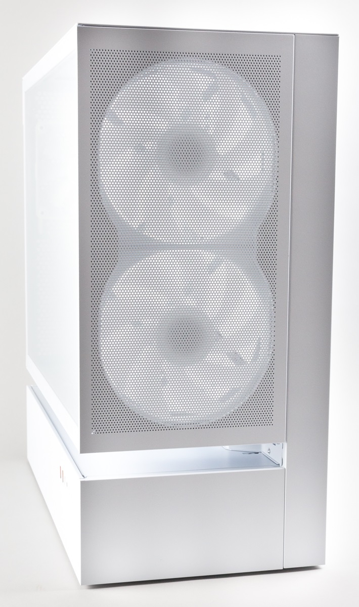 Eine Grafikkartenhalterung für sehr lange und schwere Exemplare ist ebenfalls vorhanden, genau wie seitlich platzierte moderne Anschlüsse, die allerdings nur dann sinnvoll genutzt werden können, wenn das Gehäuse auf der rechten Seite eines Schreibtisches betrieben wird.