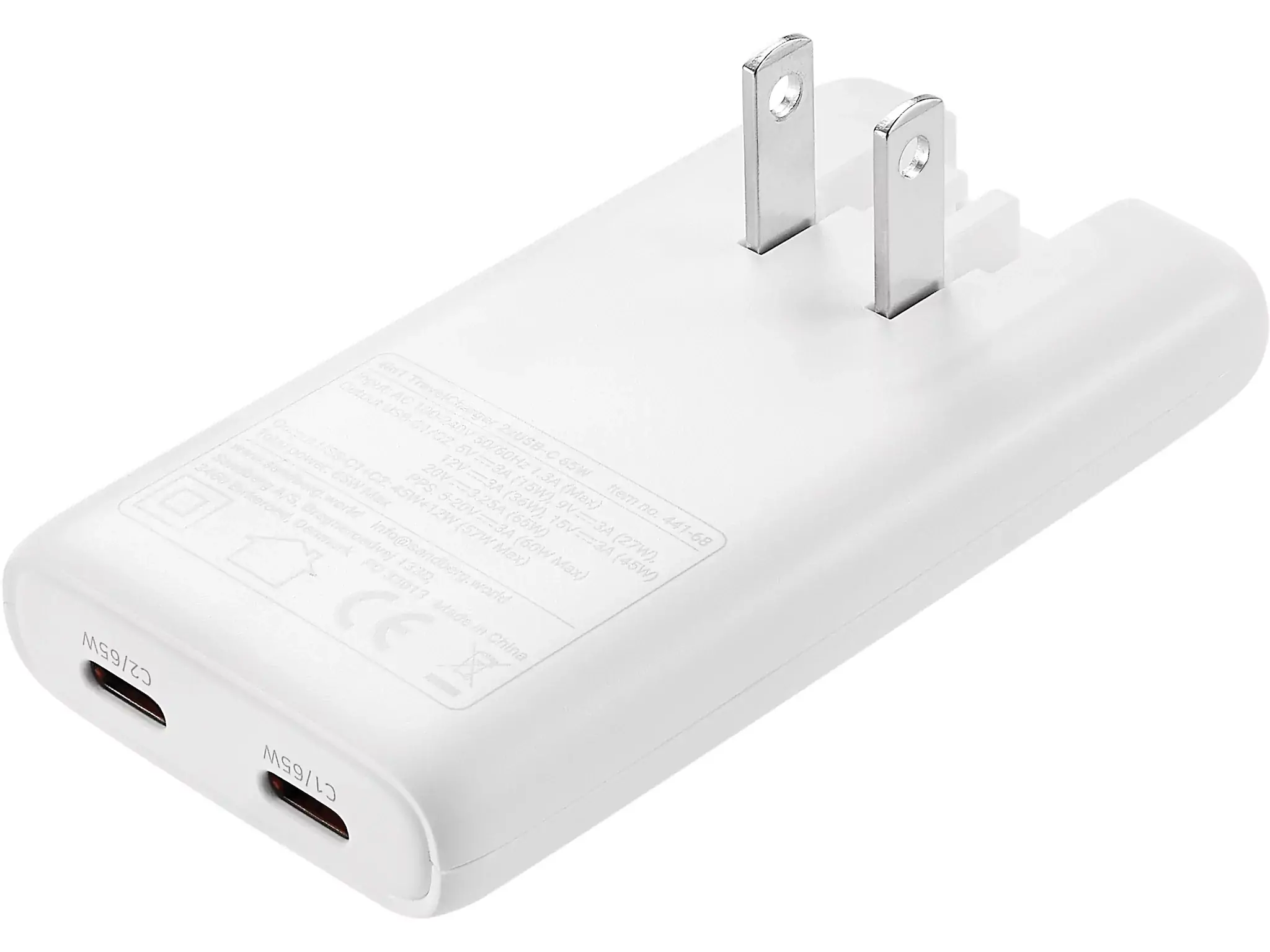 Deshalb bringt Sandberg jetzt eine universelle Lösung auf den Markt. Es handelt sich um ein Ladegerät, das mit einer Auswahl an speziellen Adaptern geliefert wird. Damit kannst du das Ladegerät in mehr als 90% aller Länder weltweit verwenden. Das Ladegerät verfügt über zwei USB-C-Anschlüsse zum Laden, die für das Telefon, den Laptop, das Tablet, die Smartwatch und so weiter verwendet werden können. Es kann bis zu 65W liefern, sodass das Laden schnell geht.