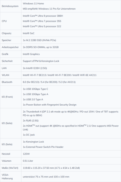 „Durch die Kombination der Effizienz und KI-Beschleunigung der Intel Core Ultra-Prozessoren mit der kompakten Technik und robusten Konnektivität von MSI bietet der Cubi NUC AI+ 3MG eine herausragende Leistung für moderne Geschäftsanwendungen und KI-gestützte Erlebnisse“, so David Feng, Vice President und General Manager, Client Computing Group, PC Segments, Intel.
