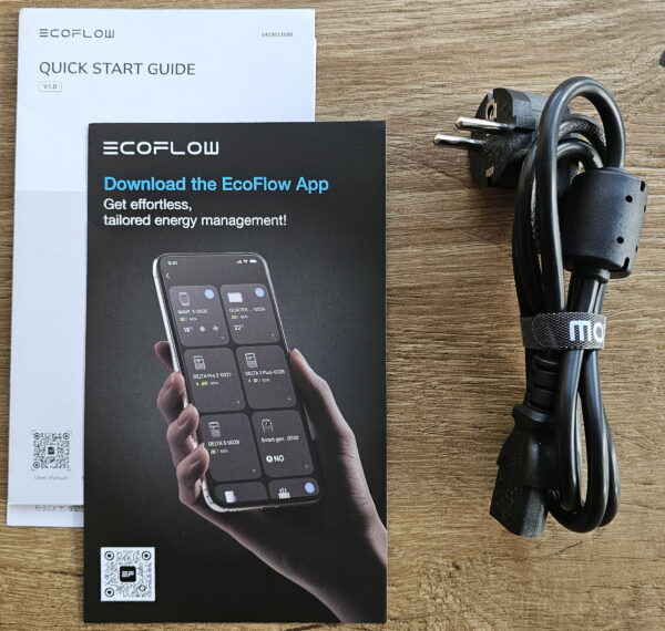 Diese Powerstation ist durchaus portabel, aber nicht in dem Sinne, dass man sie umhertragen möchte. Man kann sie aber durchaus ins Auto stellen und mitnehmen, am Zielort wieder auspacken usw. Was mich bei den Anschaffungskosten verwundert, ist erneut der Lieferumfang. Außer einem AC-Ladekabel und dem Handbuch ist nichts dabei.
