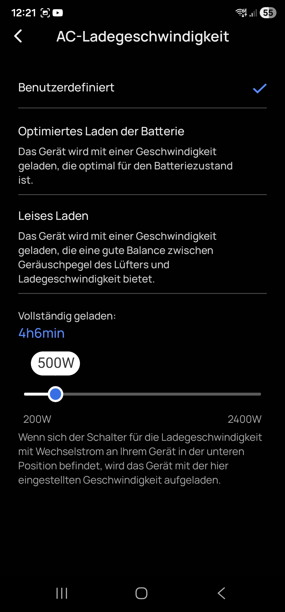 - Ecoflow DELTA 3 Max Plus – App Einstellungen zur AC Ladeleistung