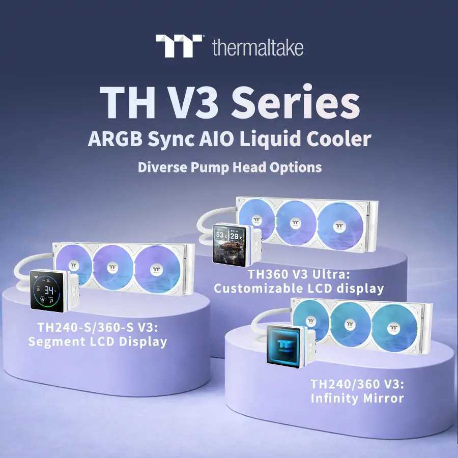 Thermaltake, a leading PC DIY brand for premium hardware solutions, introduces the TH V3 Series ARGB Sync AIO Liquid Coolers, a streamlined liquid cooling lineup designed for builders who prioritize clean aesthetics, dependable performance, and flexible display customization. Available in Black and Snow with three pump head variations, the TH V3 Series combines simplified installation with multiple visual options to suit a wide range of build styles.