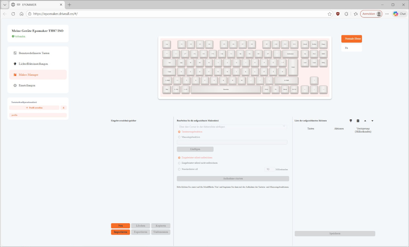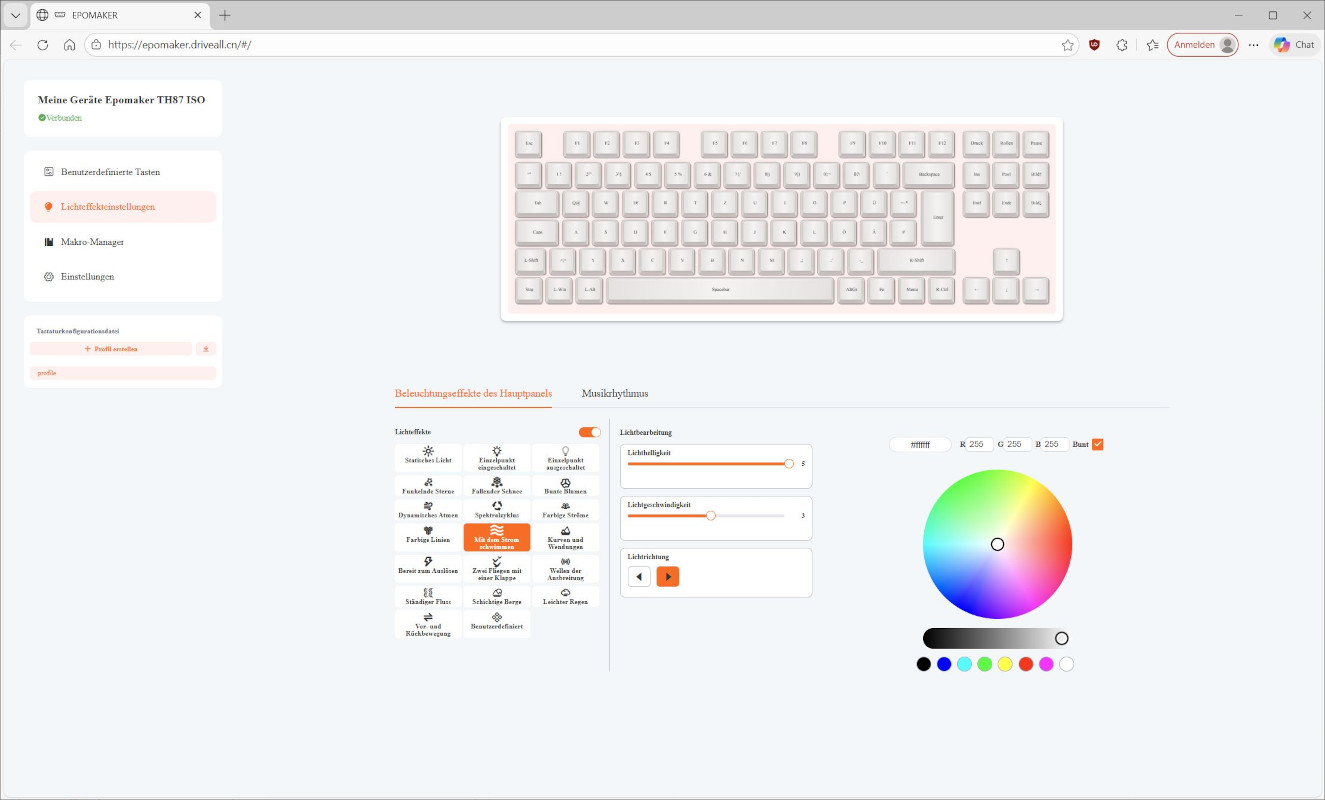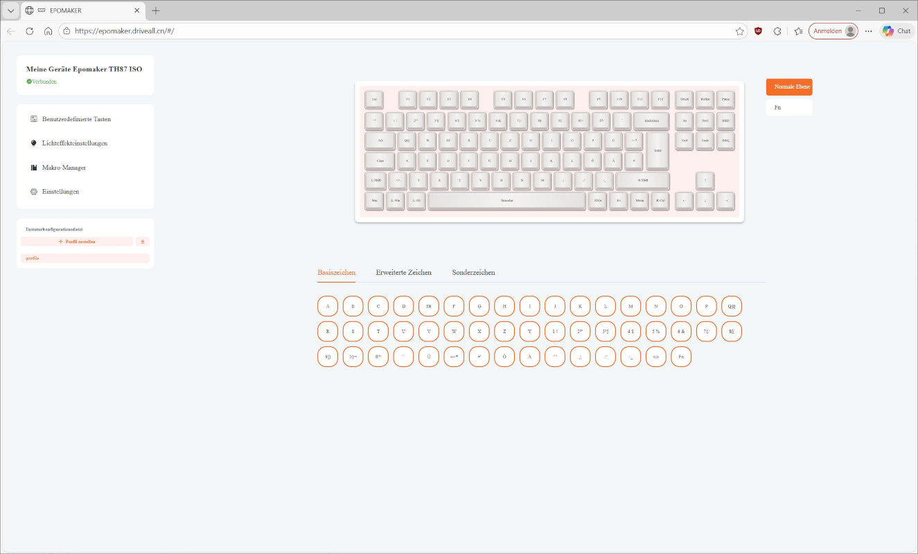 Eine „richtige“ Software gibt es für die Epomaker TH87 nicht. Stattdessen muss eine Website aufgerufen werden, über die Einstellungen der Tastatur vorgenommen werden können. Dies sollte unabhängig vom Betriebssystem funktionieren.