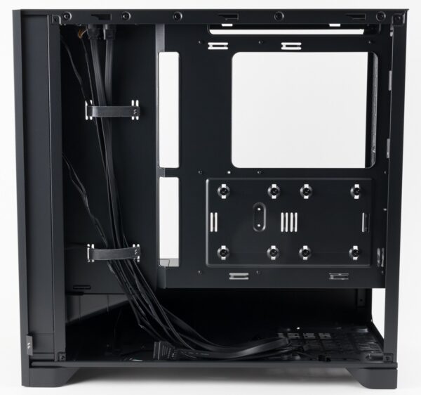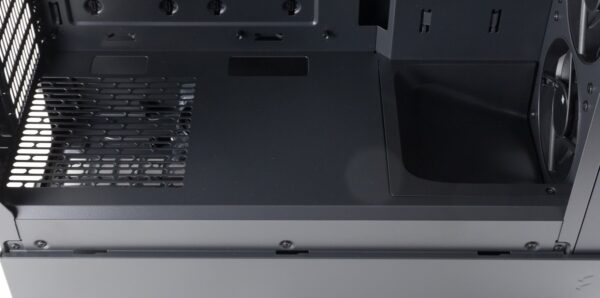 Der Innenraum des Fractal Design Pop 2 Air Gehäuses besitzt ein Zwei-Kammer-System, welches im unteren Teil Platz für Netzteil, Festplatten und SSDs bietet.