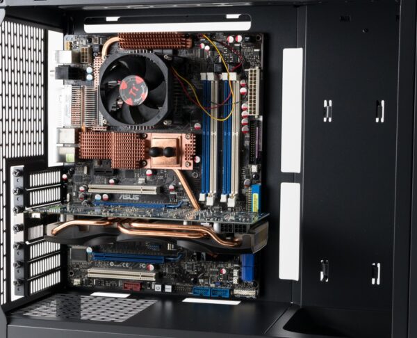 Eine Grafikkarte darf bis zu 416 mm lang sein. Der CPU-Kühler darf eine maximale Höhe von 170 mm besitzen. Ein um 90 Grad gedrehter Einbau der Grafikkarte ist leider nicht möglich, auch nicht mit optionalem Zubehör.