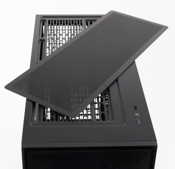Das Fractal Design Pop 2 Air besitzt für das Netzteil sowie im oberen Bereich einen Staubfilter. Die Front besteht aus ähnlich feinem Meshgitter und stellt damit indirekt ebenfalls einen Staubfilter dar, kann für eine Reinigung allerdings nicht so einfach entfernt werden, wie das bei der magnetischen Variante im Top der Fall ist.