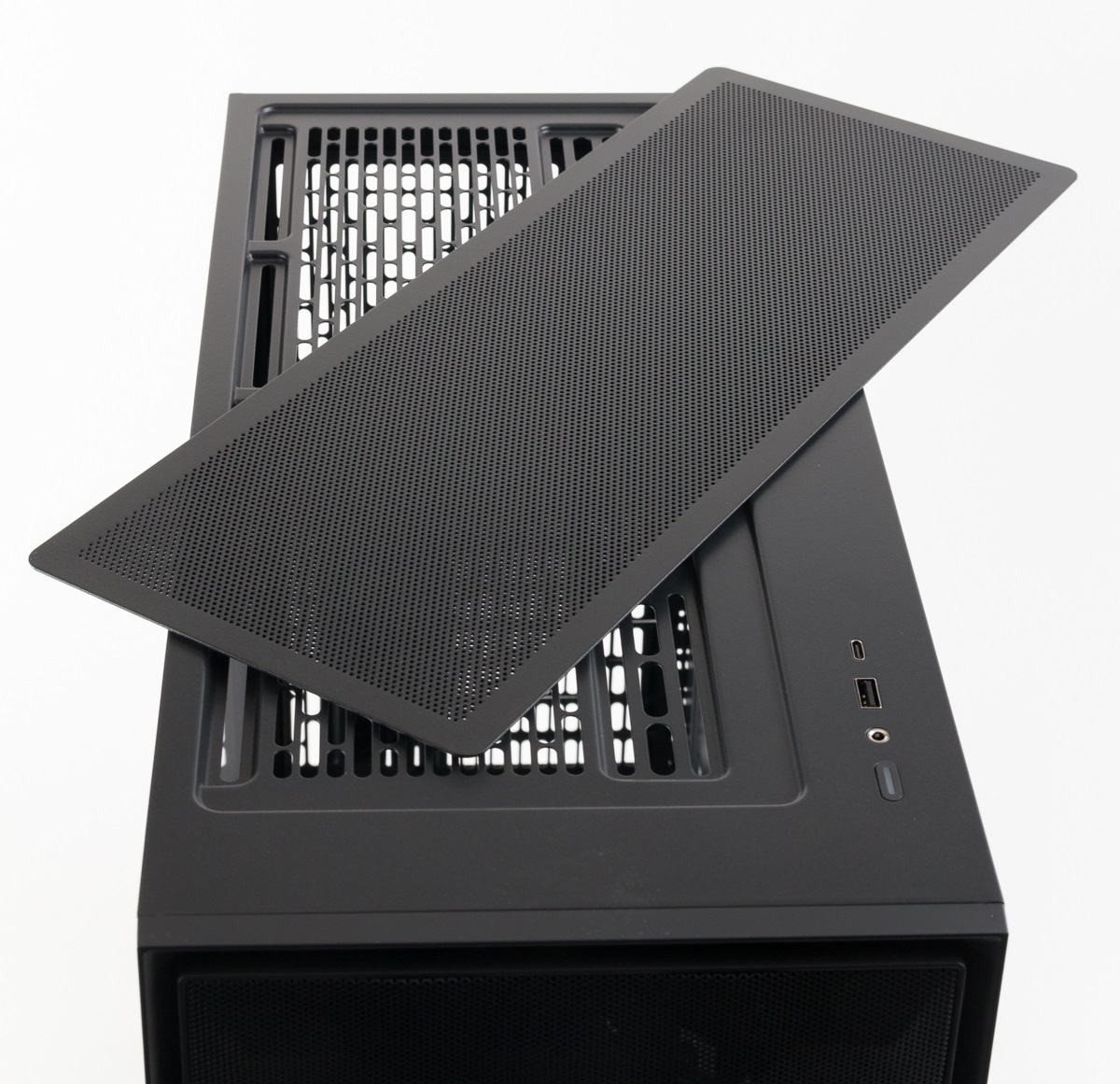Die Anschlüsse im Top fallen auch eher mager aus, einen zweiten USB-A-Anschluss hätten wir uns hier gewünscht. Dieser war beim Vorgängermodell noch vorhanden. Bei der RGB-Version gibt es in diesem Bereich erfreulicherweise aber einen weiteren Knopf, über den die Beleuchtung gesteuert werden kann. Bei unserer getesteten „TG“-Variante fehlte dieser, sodass sich auch eine nachgerüstete Beleuchtung nur über ein Mainboard steuern lässt.