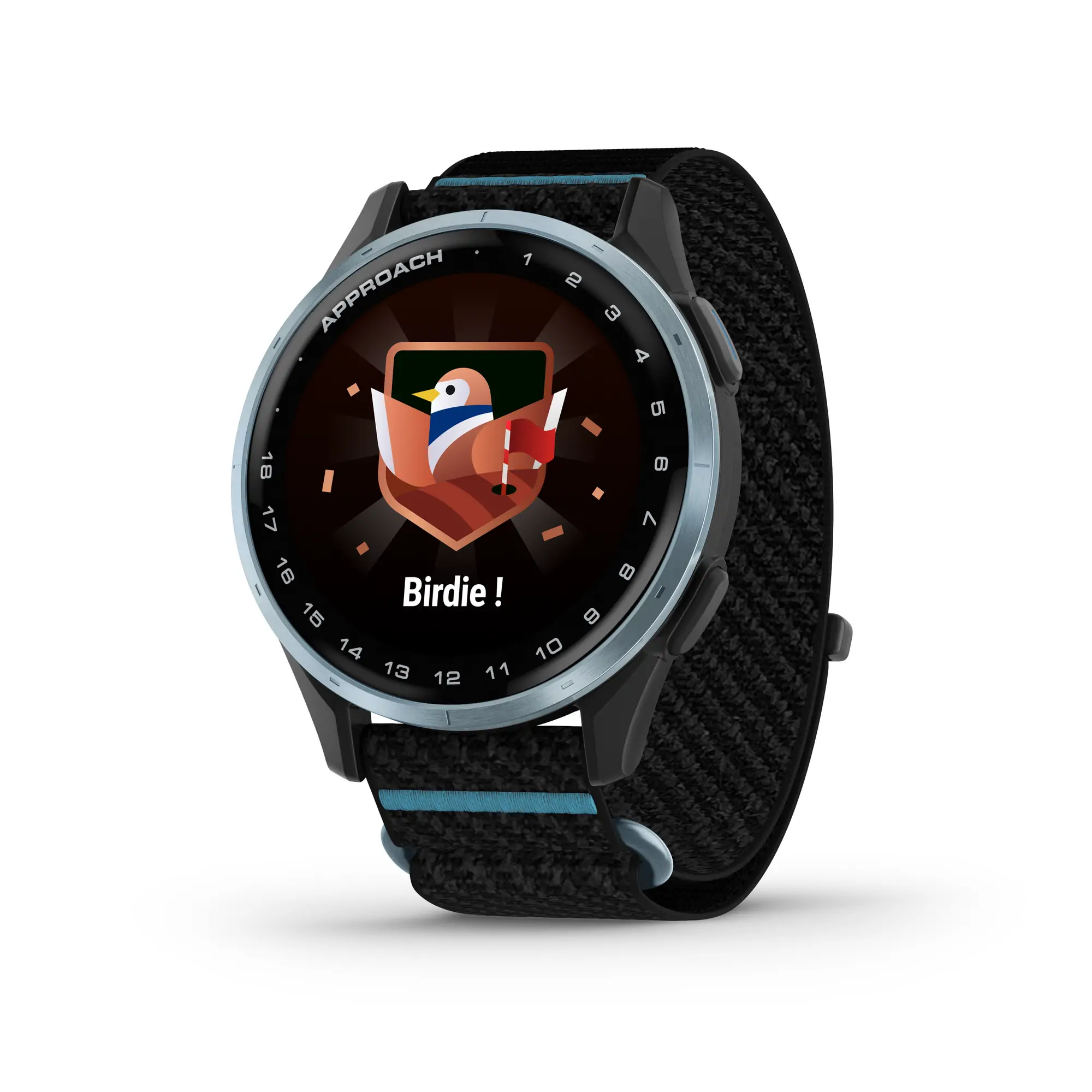 Diese schlanke, leichte Golfuhr wurde so konzipiert und gebaut, dass sie während eines Golfschwungs praktisch unbemerkt bleibt und die Konzentration auf den Schlag nicht beeinträchtigt. Sie verfügt über ein helles, 1,2-Zoll AMOLED Touchdisplay, ist wasserdicht, robust und mit einer Akkulaufzeit von 15 Stunden im GPS-Modus auch sehr ausdauernd. Neben dem Golfen können auch weitere Aktivitätsprofilen wie Radfahren oder Laufen aufgezeichnet werden, was die Uhr zum idealen Begleiter für alle sportlichen Aktivitäten macht.