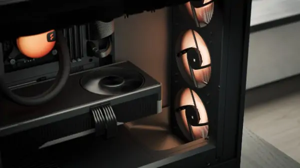 Das Pop 2 Air vereint eine offene Mesh-Front, ein belüftetes Top-Panel und einen integrierten GPU-Luftleitkanal, um ab Werk für optimale Kühlung zu sorgen. Es bietet Kompatibilität mit leistungsstarken Gaming-Komponenten und unterstützt Grafikkarten bis zu 416 mm Länge, sowie Radiatoren bis zu 360 mm an der Oberseite. Drei Swept-Blade-Lüfter sind bereits vorinstalliert und sorgen für einen leisen, effizienten Luftstrom.