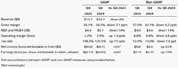Intel Reports Fourth-Quarter and Full-Year 2025 Financial Results