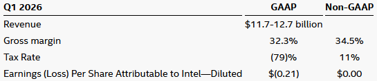 Intel’s guidance for the first quarter of 2026 includes both GAAP and non-GAAP estimates as follows: