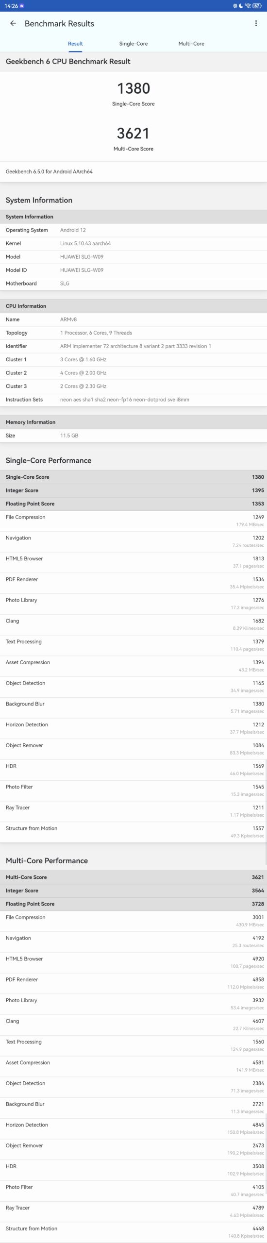 - Huawei Matepad 11.5 S 2026 – Geekbench 6.5 CPU