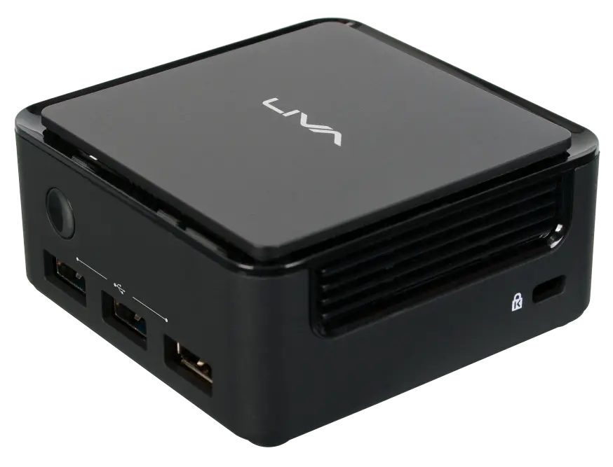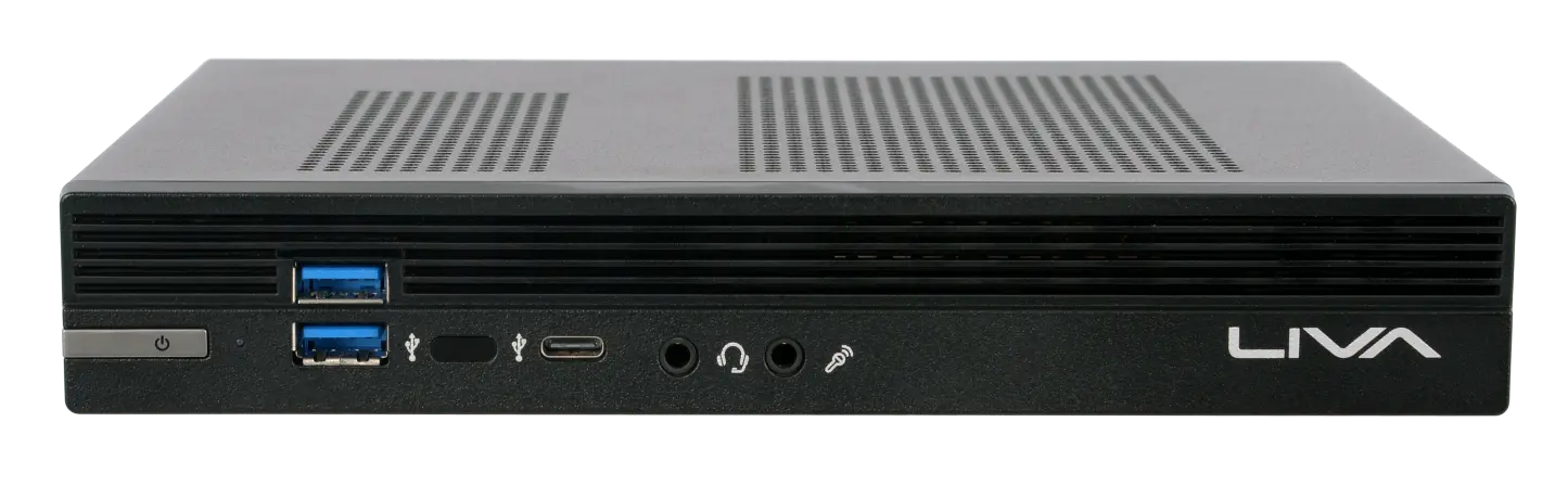 LIVA Z4 is powered by the Intel® Processor N150, supporting up to 16GB of SO-DIMM memory and M.2 PCIe Gen3 SSD storage, offering a balanced combination of performance and power efficiency for stable commercial operation. The compact system supports dual display outputs (HDMI and DisplayPort) in a space-saving chassis measuring 99.9 × 99.9 × 33 mm, making it ideal for retail terminals, meeting room displays, service counters, and lightweight digital signage deployments.