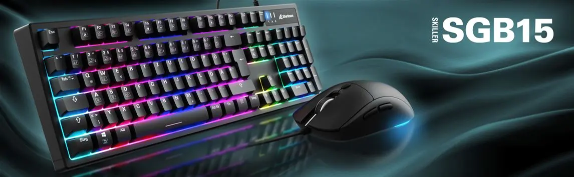 Perfekter Einstieg in wilde Matches: Das SKILLER SGB15 Set kombiniert eine stylishe Rubber-Dome-Tastatur mit vollem 3-Block-Layout mit einer präzisen Gaming-Maus, mit 1.000 Hz Polling-Rate und bis zu 4.200 DPI in sechs Stufen. Die knackige RGB-Beleuchtung mit coolen Effekten sorgt zudem dafür, dass dein neues Equipment auch außerhalb des Spiels eine gute Figur macht.