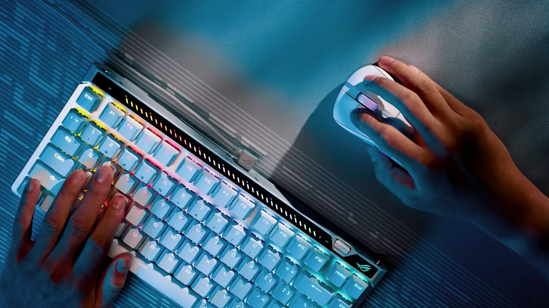 Ein integriertes Einstellrad ermöglicht die Feinjustierung des Auslösepunkts und der Rapid Trigger-Empfindlichkeit, während das interaktive Touchpad eine komfortable Steuerung für Medien- und Systemeinstellungen ermöglicht. Eine sechsschichtige Dämpfung verbessert die Akustik der Tastenanschläge, und die langlebigen ROG Doubleshot PBT-Tasten mit einem schützenden Transportcase machen die Tastatur reisetauglich.