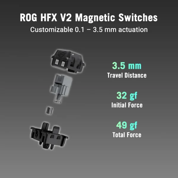 - Hot-Swap-fähige ROG HFX V2 Switches: Anpassbarer Auslösepunkt von 0,1 mm bis 3,5 mm