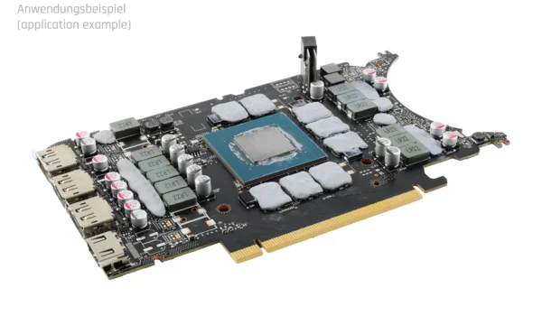 Ein zentraler Vorteil des Apex Thermal Putty liegt in seiner optimalen Konsistenz für Verarbeitung und Formstabilität. Das Material passt sich unter leichtem Druck optimal an unterschiedliche Spalthöhen an und bleibt dennoch formstabil. Dadurch können Unebenheiten und Toleranzen zwischen Kühler und Bauteil zuverlässig ausgeglichen werden, wodurch stets ein optimaler Kontakt zwischen Wärmequelle und Kühlkörper sichergestellt wird. Dies ist insbesondere bei modernen Grafikkarten und anderen sensiblen elektronischen Komponenten von großer Bedeutung, da empfindliche Bauteile wie Speicherchips oder Spannungswandler so vor Schäden geschützt werden.