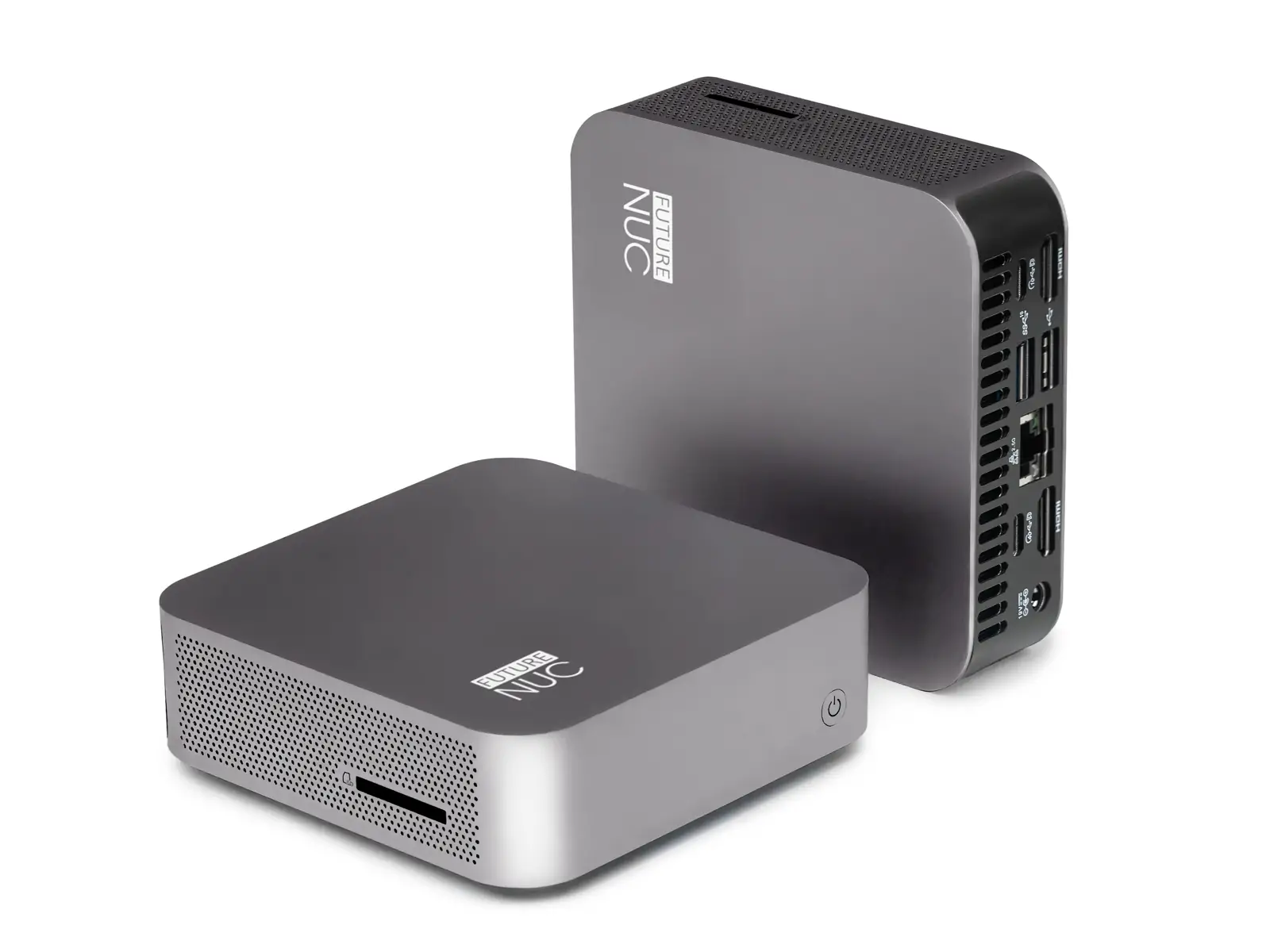 Das hochwertige Metallgehäuse aus Aluminium-Magnesium des FutureNUC Ultra in kompaktem Formfaktor (112 × 37 × 112 mm) besticht dabei durch seine puristische Designsprache: Völlig ohne Anschlüsse auf der Vorderseite bietet es schlichte Eleganz auf jedem Schreibtisch. Dank VESA-Halterung lässt sich der Mini-PC zudem auch direkt hinter einem Monitor anbringen.