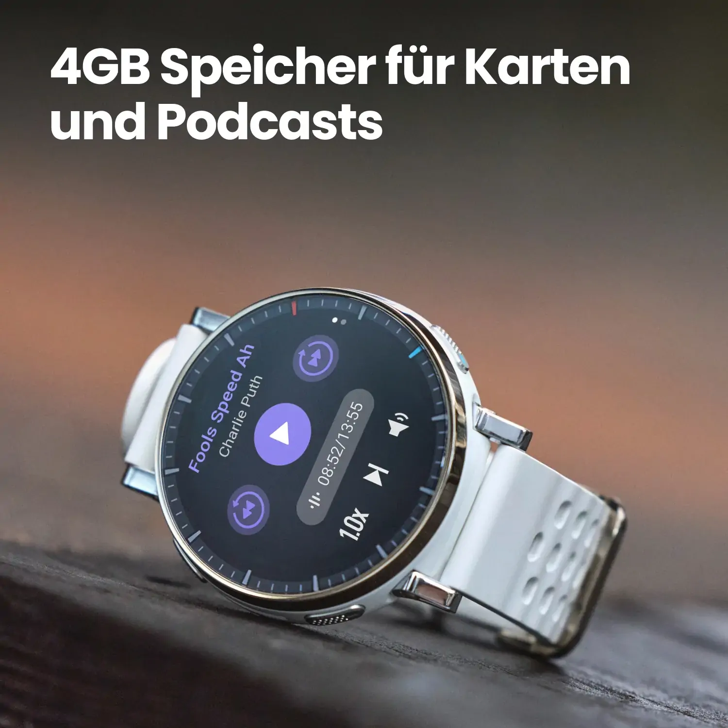 Unterstützt durch ein Positionierungssystem mit sechs Satelliten und Offline-Karten ermöglicht die Active 3 Premium das Laufen ohne Smartphone mit Turn-by-Turn-Navigation, automatischer Routenberechnung und Punkt-zu-Punkt-Routenplanung. Mit 4 GB internem Speicher können Nutzer ihre Lieblings-Podcasts und Karten direkt am Handgelenk speichern, sodass sie ohne Ablenkungen auf Kurs bleiben.