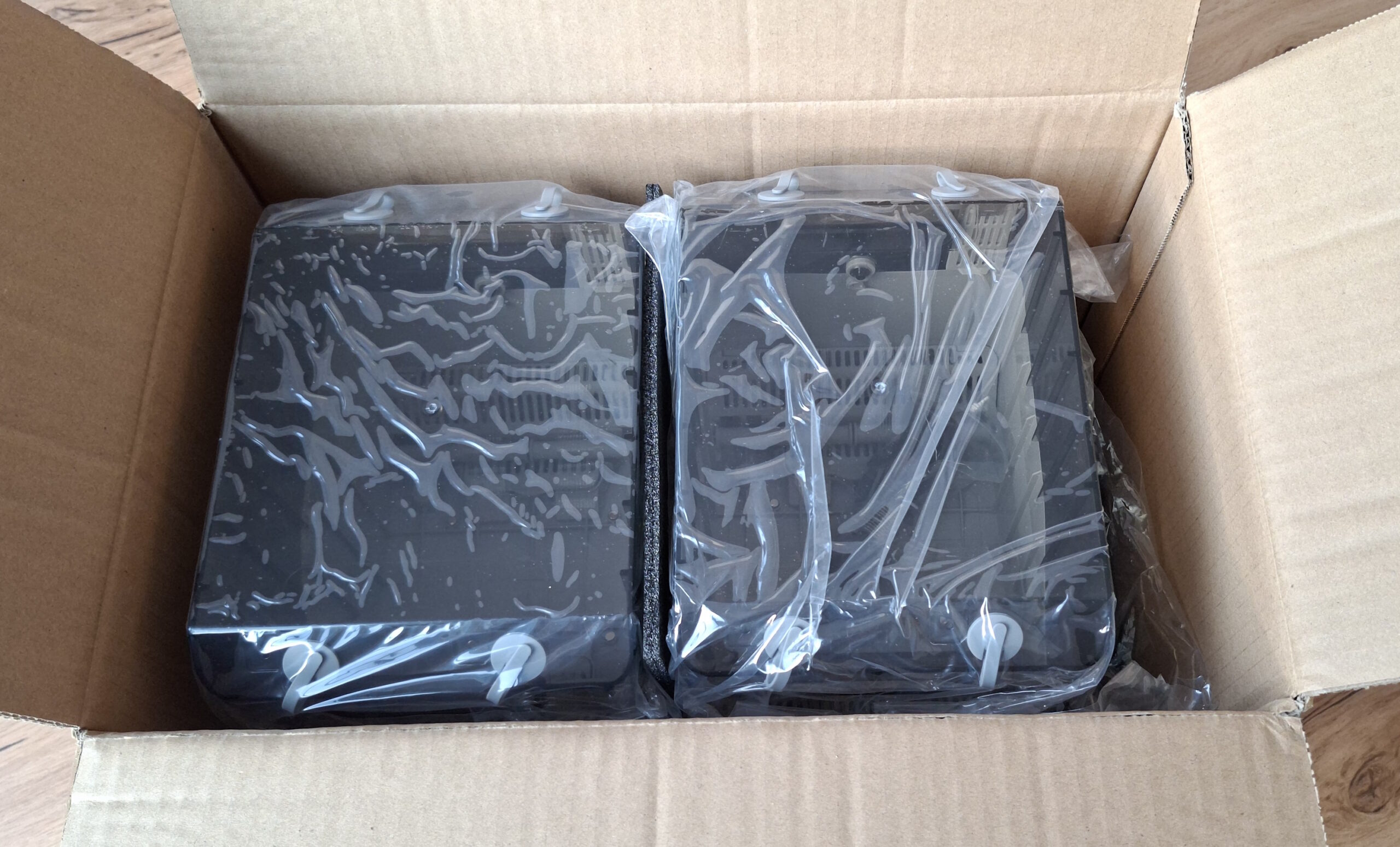 Der Chitu Systems FilaPartner E1 ist gut und sicher verpackt. Schaumstoff schützt das Gerät beim Versand. Gleichzeitig sind beide Filamentboxen zusätzlich mit einer Plastikfolie gegen Kratzer geschützt.