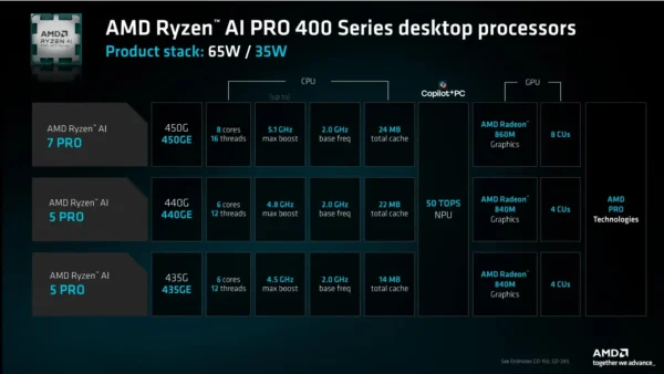 Stattdessen priorisiert AMD CPU-Leistung und NPU-Durchsatz. Die Ryzen AI 5 400G-Varianten differenzieren sich primär über das Verhältnis von Zen-5- zu Zen-5c-Kernen, wodurch sich unterschiedliche Performance-Profile realisieren lassen, während Plattform und NPU-Funktionalität konsistent bleiben.