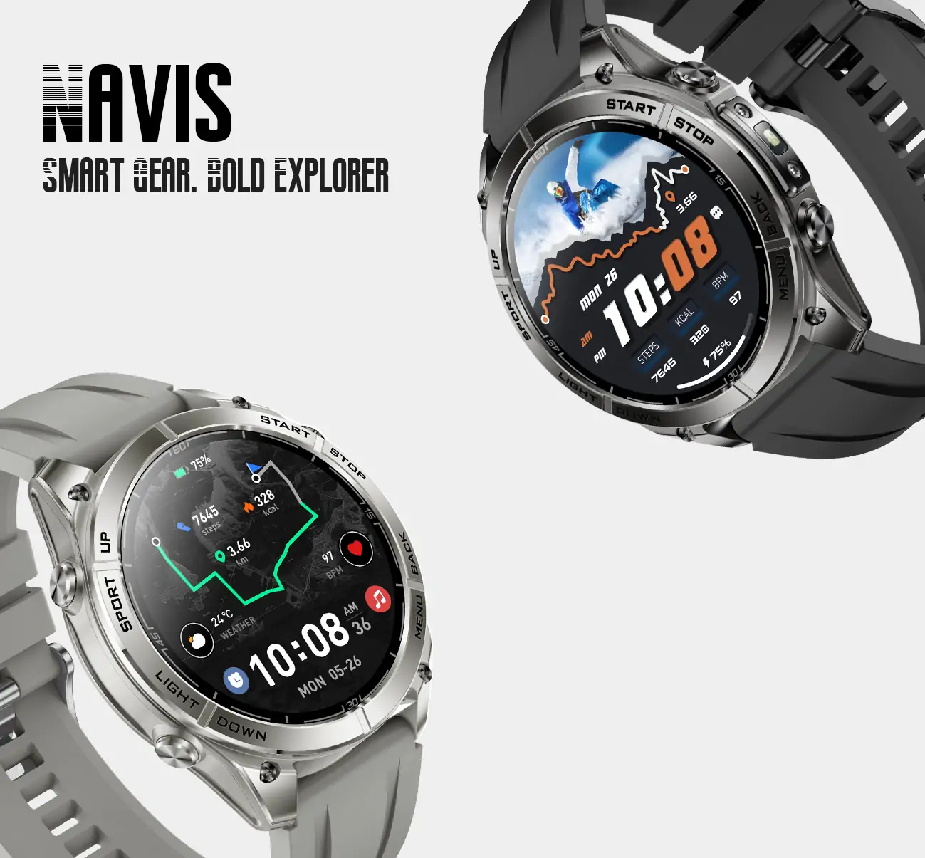 Designed for true outdoor endurance, Navis features a large-capacity battery and intelligent power management for extended use. The 50-meter waterproof rating and a professional swimming algorithm accurately record laps and pace, while a water drain mode quickly clears residual moisture. A high-brightness LED flashlight, built-in compass, and barometer provide essential tools for camping, cycling, and exploration, ensuring users remain prepared in any environment.