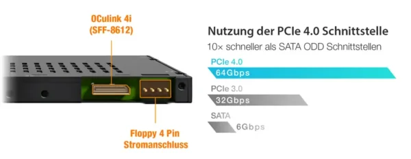 • OCuLink 4i-Schnittstelle (SFF-8612), PCIe Gen 4 x4, bis zu 64 Gbps