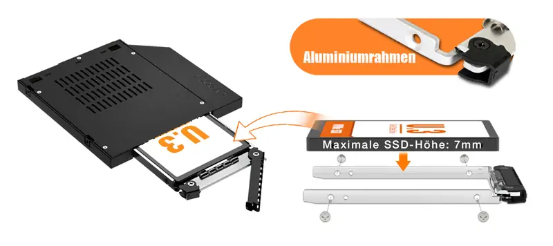 Umwandlung des Ultra Slim ODD-Schachts in einen Hochgeschwindigkeits NVMe Schacht