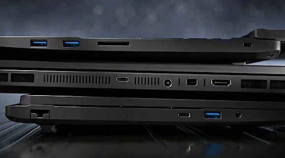 Speicherseitig bietet der 16-Zöller jeweils zwei leicht erreich- und aufrüstbare Steckplätze für bis zu 128 GB DDR5-RAM und 8 Terabyte PCIe 4.0-SSD-Speicher.