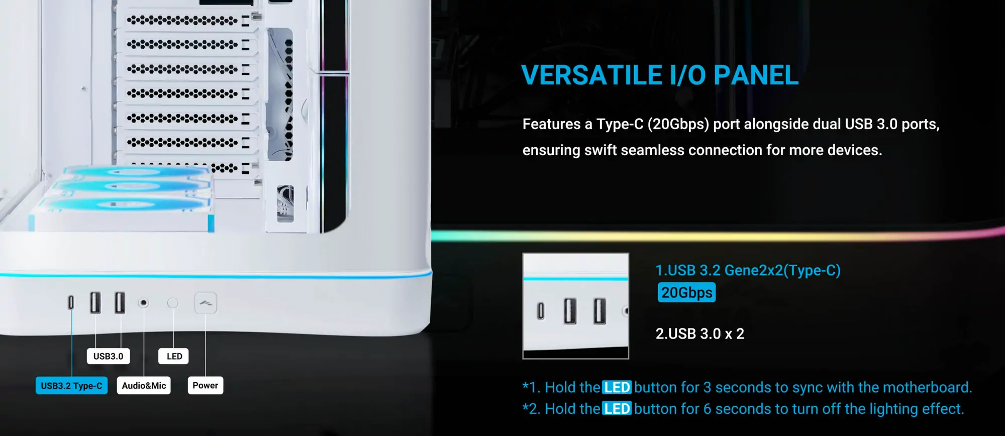 Es kombiniert gebogenes Panoramaglas, auffällige integrierte Beleuchtung und leistungsstarke Kühlungsunterstützung in einem übersichtlichen, nutzerfreundlichen Gehäuse.