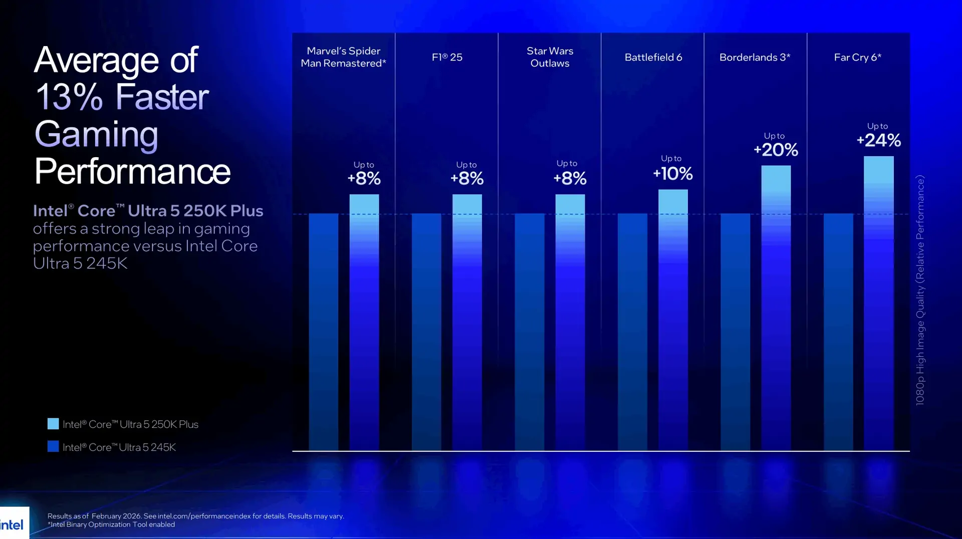 Parallel kündigte Intel ein Binary Optimization Tool an, das Anwendungen und Spiele speziell für Arrow-Lake-S-Systeme optimieren soll. Details zur Funktionsweise sind bislang nicht bekannt. Die neuen Prozessoren sollen ab dem 26. März 2026 im Handel verfügbar sein.