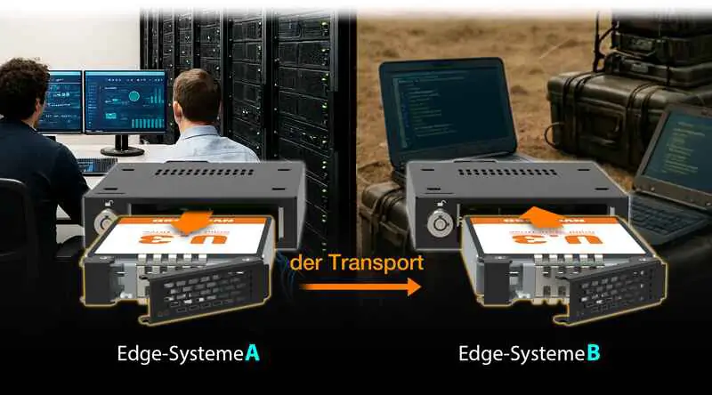 CP156 wurde speziell für Arbeitsabläufe entwickelt, bei denen Daten physisch zwischen Systemen transportiert werden. Durch die Verschraubung beider SSDs im Tray legt das Design den Fokus auf mechanische Stabilität und sicheren Transport statt auf werkzeuglose Bedienbarkeit. Dadurch eignet es sich ideal für: