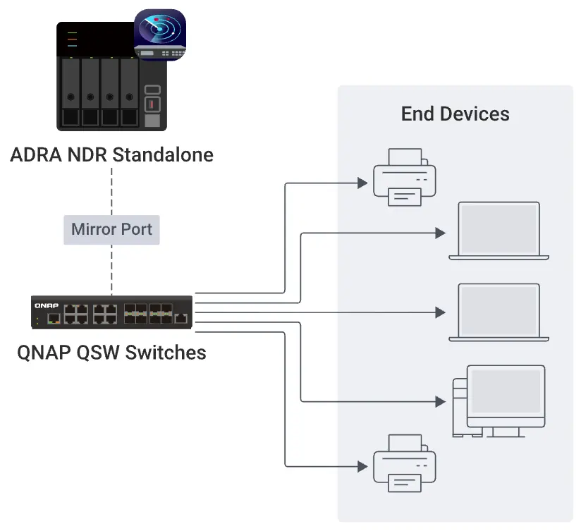 - Niedrige Eintrittsbarriere, schnelle Bereitstellung: ADRA NDR Standalone ist als kostenloser Download im QNAP App Center verfügbar und kann auf unterstützten QNAP NAS Geräten installiert werden. In Kombination mit kompatiblen QNAP Switches können Organisationen NDR bereitstellen, ohne zusätzliche Sicherheitsgeräte erwerben oder sich für wiederkehrende Lizenzen anmelden zu müssen.