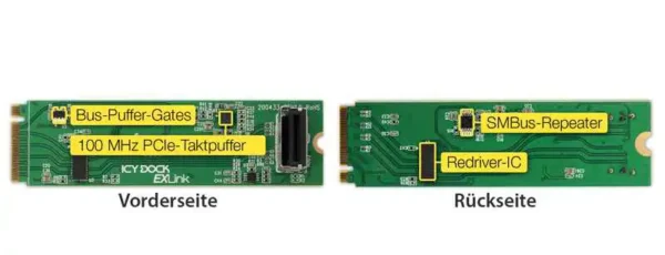 - Integrierter PCIe Gen5 Redriver gewährleistet Signalqualität bei hohen Geschwindigkeiten über lange Kabelstrecken