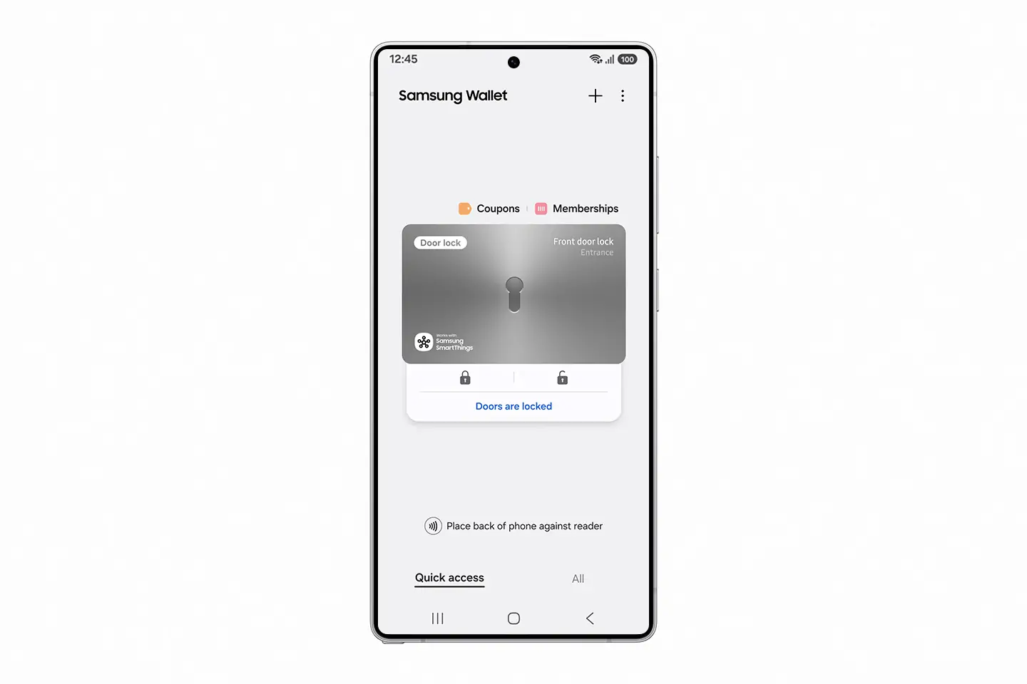 Sobald ein kompatibles Smart-Türschloss über Samsung SmartThings¹ unter Verwendung von Matter, dem globalen Smart-Home-Standard, eingerichtet ist, können Nutzer*innen einen Digital Home Key zu Samsung Wallet hinzufügen. Je nach Gerät und Schlossfunktionen können sie ihre Tür durch Antippen ihres Smartphones mit NFC-Technologie (Near Field Communication)², durch kontaktlosen Zugang mit der Näherungserkennung von UWB (Ultra Wideband)³ oder aus der Ferne über die App entriegeln.