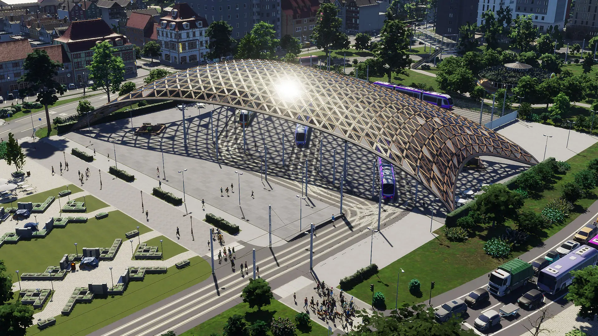 Mit dem City Stations Creator Pack, das vom Community-Entwickler „BadPeanut“ entworfen wurde, können Spielende die Verkehrsinfrastruktur ihrer Metropole erweitern. Es enthält eine Auswahl an Haltestellen für Bus-, Bahn-, Straßenbahn- und U-Bahn-Netze und bietet den Einwohnern der Spielwelt neue Sehenswürdigkeiten. Damit wird der Grundstein für ein effizientes und ästhetisch ansprechendes Verkehrssystem gelegt.