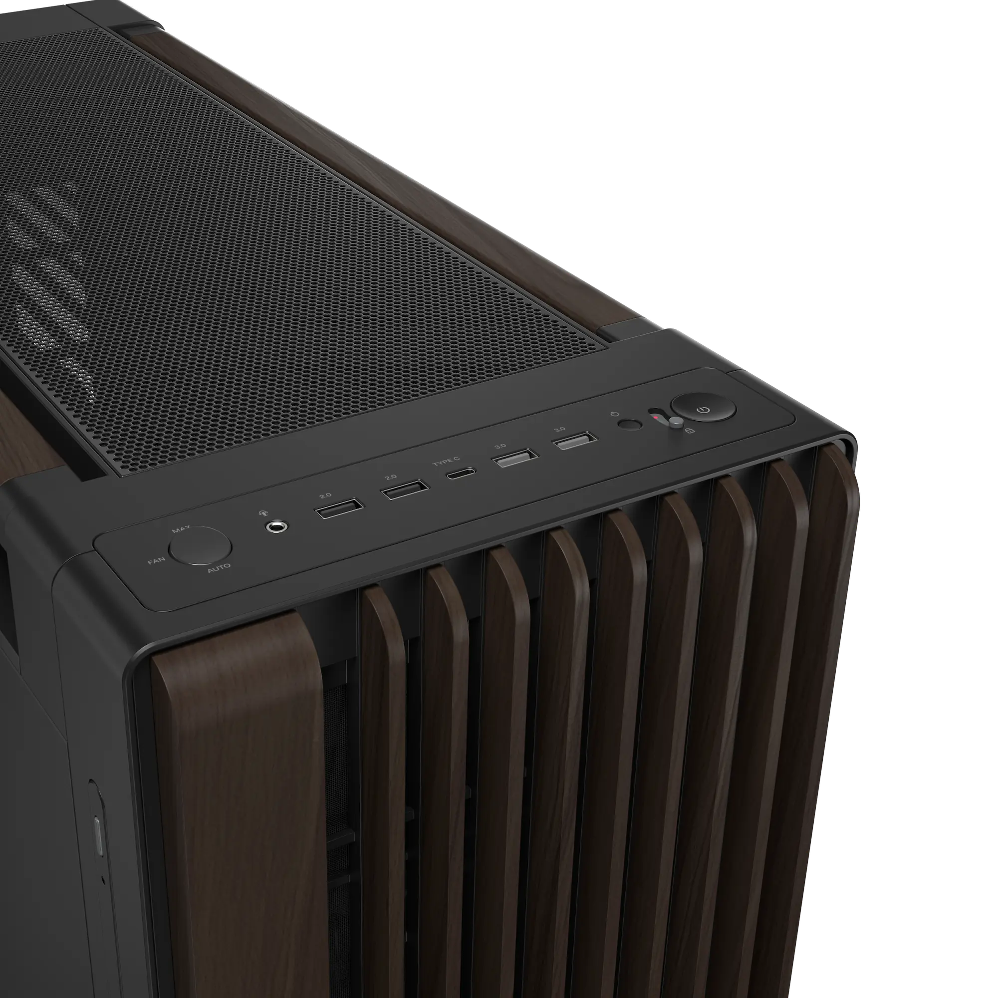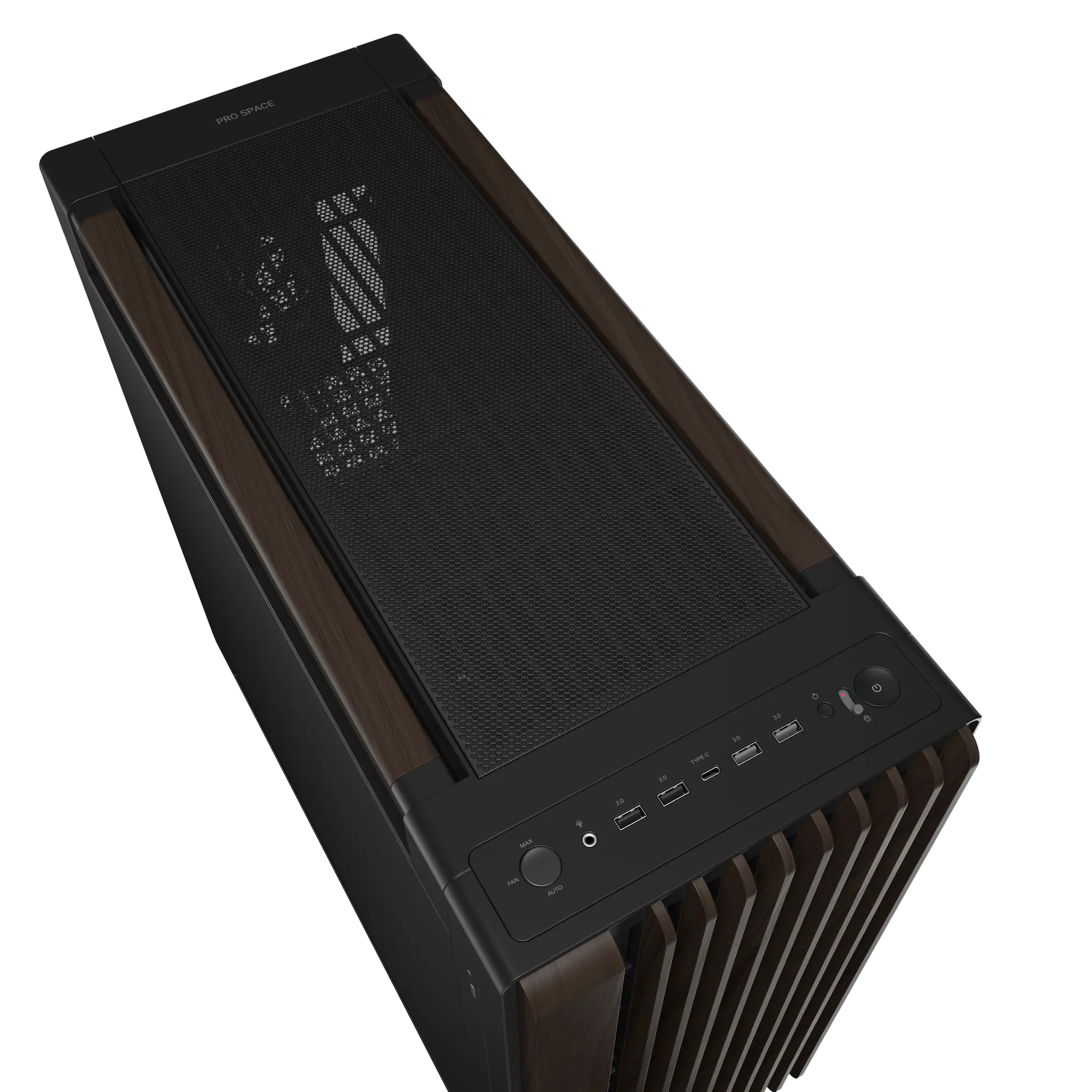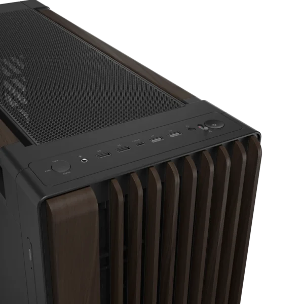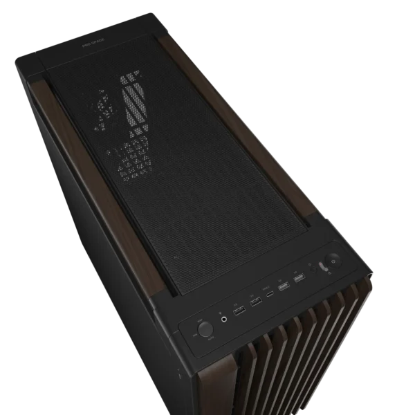 Das ProArt PA602 Wood Edition-Gehäuse geht über die Vereinfachung des Bauprozesses hinaus und bietet durchdachte Details, die die alltäglichen Erfahrungen des Benutzers mit seinem PC vereinfachen. Grafiker müssen oft eine Vielzahl von Peripheriegeräten und externen Speichermedien an ihre Workstations anschließen, daher ist die Vorderseite mit zahlreichen USB-Anschlüssen ausgestattet. Die Liste wird von einem schnellen USB 20 Gbps Typ-C®-Anschluss angeführt – kombinieren Sie dieses Gehäuse mit einem kompatiblen Mainboard, um das Beste daraus zu machen. Zwei USB 5 Gbps Type-A und zwei USB 2.0 Ports bieten dem Benutzer zahlreiche Optionen für den Anschluss anderer Geräte.